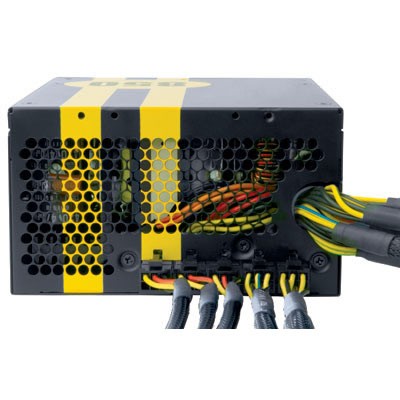 Tutti i cavi modulari sono inguainati e contrassegnati così da eliminare la confusione interna, rendere il sistema ordinato e professionale, e assicurare che i percorsi di aerazione non siano ostruiti. L’alimentatore è dotato di una ventola di raffreddamento da 80mm che assicura la riduzione del rumore prodotto dall’apparecchio, mentre i quattro connettori PCI-E sono in grado di alimentare fino a due schede video di ultima generazione. Le alte prestazioni sono supportate anche da un’estetica caratterizzata da una verniciatura a righe che ricorda quella delle macchine da corsa.