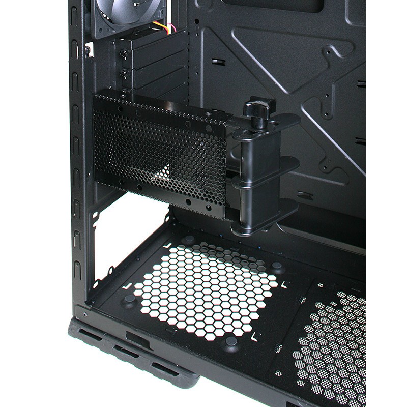 Oltre ai classici slot di espansione PCI questo cabinet ne ha uno aggiuntivo sull aparatia posteriore, che può essere usato ad esmpio per l'installazione dell porte USB aggiuntive, che spesso sono fornite mediante una staffa insieme alla scheda madre, in modo da non occupare uno slot della piastra madre, che in questo modo resta libero per eventuali schede di espansione. L'alimentatore si installa sulla parte inferiore del cabinet, dove troviamo una griglia di ventilazione predisponta in corrispondenza della ventola dell'alimentatore, in modo da garantire sempre una corretta circolazione dell'aria.