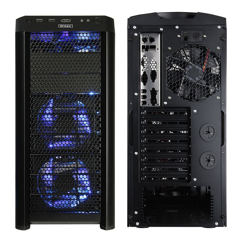 Pensato come case per gamer questo cabinet Antec ha un look aggressivo, ventilazione eccellente, qualità assoluta e ottimizzazione massima dello spazio disponibile. Rispetto al modello precedente le migliorie più evidenti sono di carattere visivo. nuovo top, quattro ventole preinstallate Blu Luminose ed interni completamente neri.