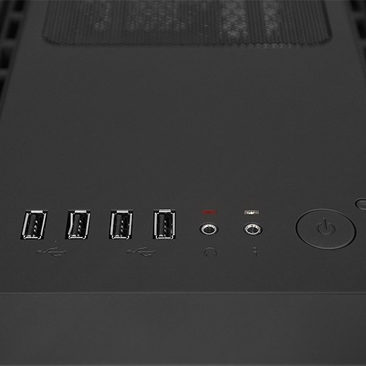 Il layout esteriore è semplice e pulito, viene evidenziato cosi il look nero mimetico del case, che si estende anche all'interno. La versione finestrata si presenta con una paratia laterale trasparente, su cui è possibile anche installare una fan addizionale. Il pannello di I/O, posizionato superiormente nell'angolo frontale, è equipaggiato con 2 porte USB 3.0, due porte USB 2.0 e connettori audio.