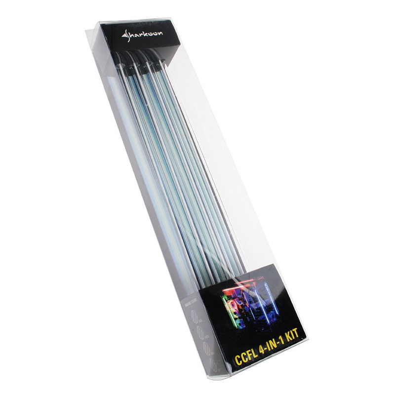 L'alimentazione viene prelevata da un molex a 4 pin. Forniti nella confezione dei pad biadesivi per il fissaggio di neon ed inverter. Compreso anche un interruttore per lo spegnimento dei neon nei momenti di non utlizzo. I tubi al neon sono lunghi circa 30 cm con un diametro di circa 1 cm. I neon non scaldano eccessivamente e sono appravati dalla CE.
