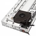 La piastra collettore O11D Distro-Plate G1 è molto più di una piastra di distribuzione per sistemi di raffreddamento custom: la capacità e la pompa DDC-3.1 integrata rendono la Distro-Plate un sistema di dissipazione completo. Con una prevalenza di 2,6 metri e una portata massima di 500 litri all'ora , le specifiche della pompa sono piuttosto impressionanti. La potente pompa PWM è collegata alla scheda madre tramite un connettore a 4 pin . Oltre a due radiatori, la Distro-Plate permette di collegare un WaterBlock per la CPU e due WaterBlock per la GPU, per un totale di 11 porte G1/4.