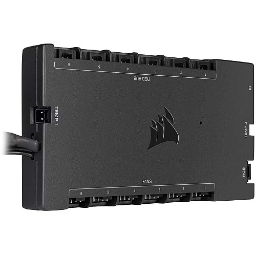 sistema di controllo digitale da Corsair con 6 canali ventole, 4 canali temperatura e due canali per il controllo LED RGB