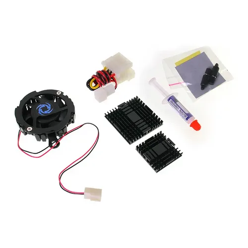 Questo nuovo Kit Revoltec permette di dissipare in maniera corretta il chipset della vostra scheda madre, anche a scopo di overlock. La confezione comprende un dissipatore in alluminio con ventola, una siringa di pasta termoconduttiva, 2 dissipatori passivi in alluminio, pad biadesivi termoconduttivi 3M ed un adattatore da 3 a 4 pin. I dissipatori passivi si installano utilizzando i pad biadesivi forniti in dotazione.