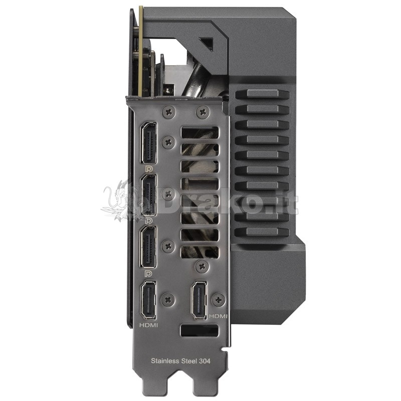 La TUF Gaming GeForce RTX 4090 utilizza un rivestimento unibody pressofuso che si accoppia direttamente a una piastra posteriore in alluminio per rafforzare la struttura generale e proteggere il PCB dal cedimento, pur offrendo molto flusso d'aria. Un logo TUF acrilico 3D aggiornato lungo la copertura fornisce un'illuminazione ARGB compatibile con Aura Sync, mentre un anello in velcro staccabile offre opzioni di gestione dei cavi extra. Un'enorme presa d'aria sul bordo della piastra posteriore consente ancora più aria di fluire attraverso le alette dalle ventole Axial-tech più grandi, fornendo il 20% in più di flusso d'aria rispetto alla TUF Gaming GeForce RTX 3090 Ti di ultima generazione.