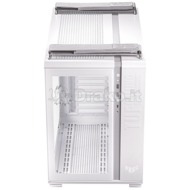 Oltre a due porte USB-A, il pannello frontale del TUF Gaming GT502 Plus è dotato di una porta USB 3.2 Gen 2 Type-C adatta per il trasferimento dati fino a 10 Gbps.