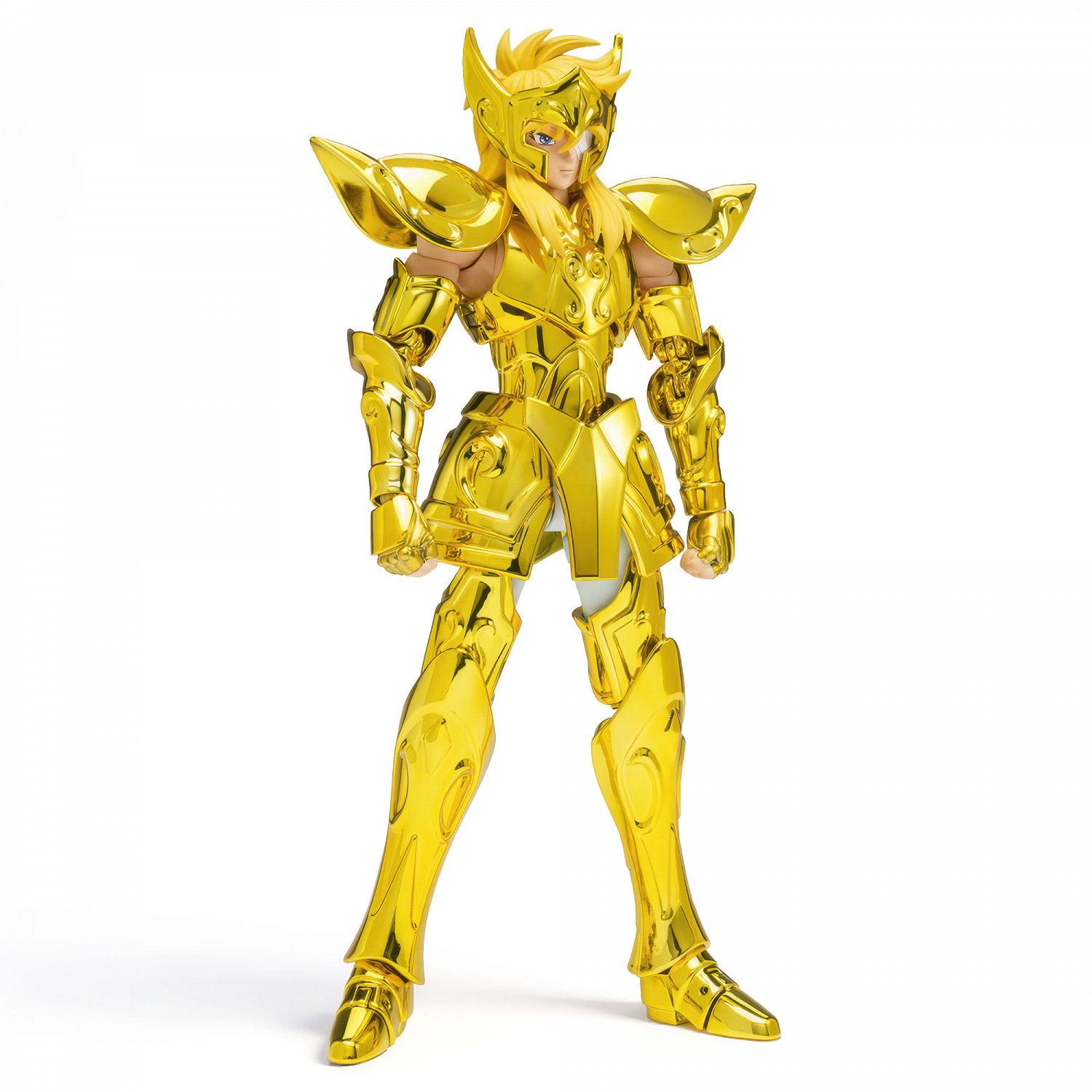 Action figure Bandai Tamashii con parti in metallo, ampia posabilità e set volto/mani. Armatura dorata convertibile in Object di Aquarius; finitura specchiata e dettagli scolpiti