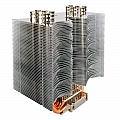 Questo Yasys è il frutto di una rivisitazione completa del modello Scythe, con l'utilizzo di ben 6 heatpipes da 6 mm che incrementano considerevolmente la capacità dissipante del cooler. Alnche il core del deissipatore è stato rivisto, con l'utilizzo di lamelle in alluminio dalla forma particolare, studiata per garantire la massima resa anche con ventole a bassissima velocità.Infatti per lo studio dei flussi d'aria è stato utilizzata una galleria del vento in scala 1:1, così da verificare la resa effettiva del dissipatore in un ambiente reale.
