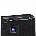 Grazie al radiatore di dimensioni 400 × 122 × 24 mm e alla pompa ad alte prestazioni che può raggiungere fino a 3200 rpm, il dispositivo supporta sistemi di fascia alta su piattaforme Intel e AMD. Il display IPS da 3,4″ (480×480) montato sulla pompa consente di visualizzare dati di sistema, GIF, video o temi personalizzati, con luminosità fino a 500 nit e refresh rate 60 Hz.