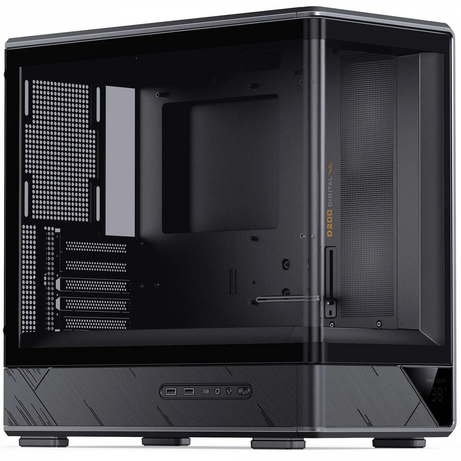 Il JONSBO D200 è un case Micro-ATX compatto con design premium caratterizzato da un ampio pannello in vetro temperato curvo che offre una visuale interna panoramica. Realizzato per build eleganti e potenti, unisce un’estetica moderna a un’ottima capacità di espansione.