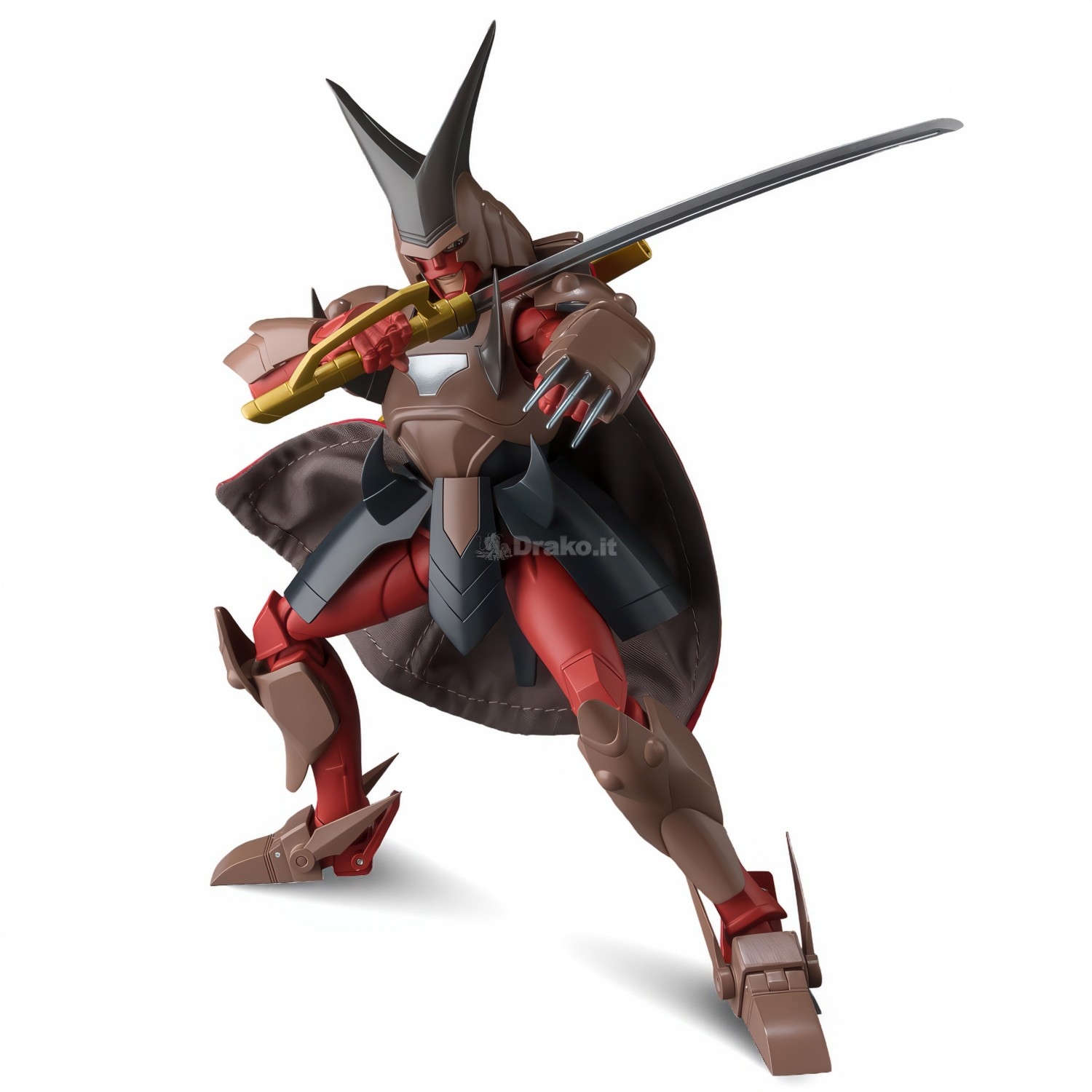 Action figure in scala 1/12 di Anubisu (Cale) dalla serie Yoroiden Samurai Troopers. Armatura magnetica removibile, mantello in tessuto con fili interni, parti facciali intercambiabili, Kokuroken e base per armatura inclusi.