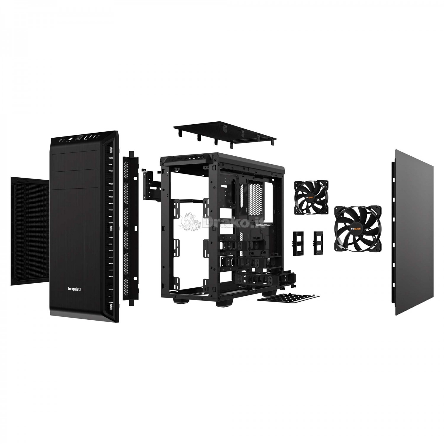 Case mid-tower silenzioso be quiet! con 2 ventole Pure Wings 2 pre-installate, insonorizzazione totale su 3 pannelli, supporto radiatori fino a 360mm su 3 posizioni, GPU fino a 425mm e controller fan 3-step.