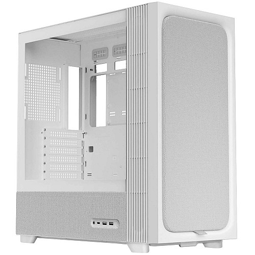 Case mid-tower da 58L con ventola crossflow verticale TCF pre-installata, pannelli fabric mesh frontale/laterale tool-free, supporto ATX/back-connect, GPU fino a 420mm (360mm con TCF), radiatori 360mm top/280mm side.
