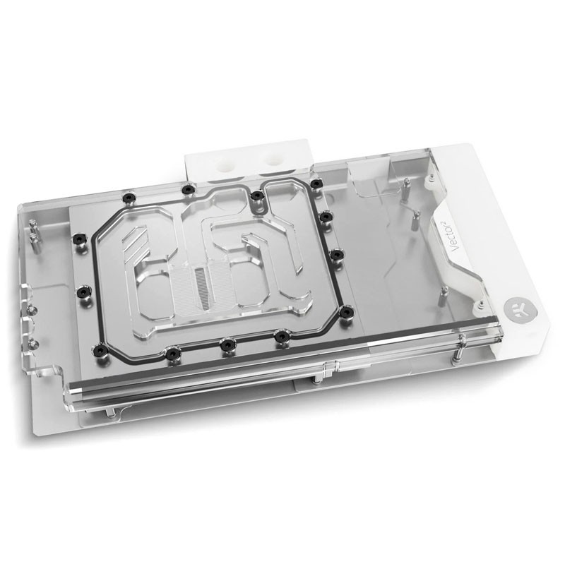Il nuovo look dei waterblock di nuova generazione è dominato da linee rette minimaliste. Una piastra fredda in rame spessa 11 mm viene utilizzata per tutti i waterblock della GPU Vector². Per le versioni Plexi, l'illuminazione D-RGB è ora distribuita sul bordo più lungo del waterblock per una migliore fedeltà e luminosità da ogni angolo di visione. Il PCB LED è nascosto all'interno di un estruso in alluminio.