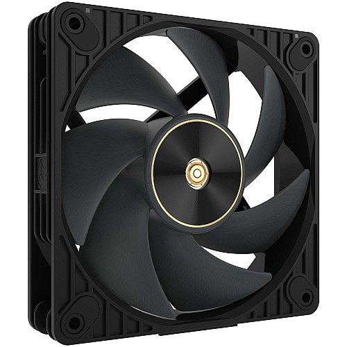 Ventola PWM 120mm high-performance con 3000 RPM max, static pressure 7.3 mmH2O e airflow 104.8 CFM. Blade LCP con gap 0.5mm, bearing brass FDB, motore 3-phase/6-pole. Connettori daisy-chain brevettati, frame 28mm.