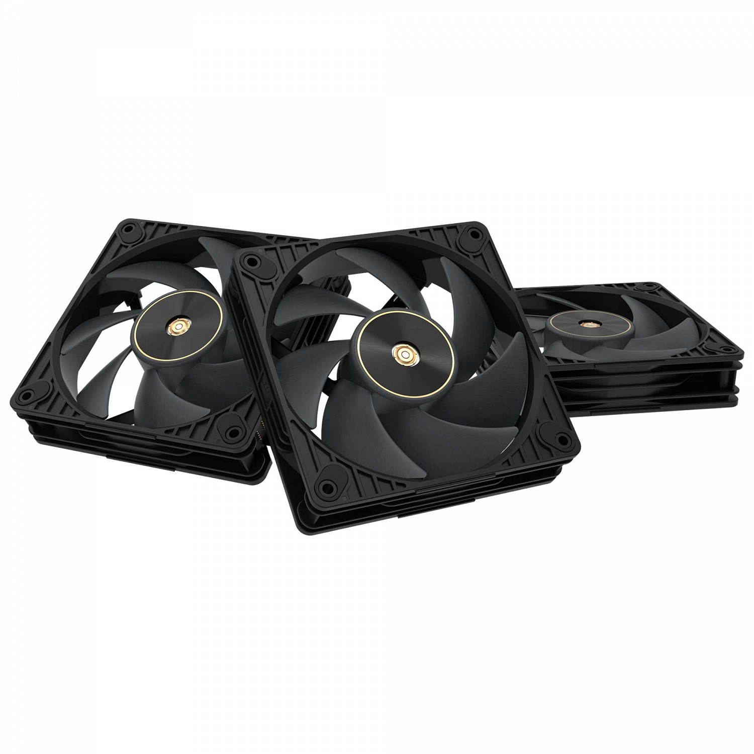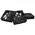 Pack da 3 ventole PWM 120mm high-performance con 3000 RPM max, static pressure 7.3 mmH2O e airflow 104.8 CFM. Blade LCP con gap 0.5mm, bearing brass FDB, motore 3-phase/6-pole. Connettori daisy-chain brevettati, frame 28mm.