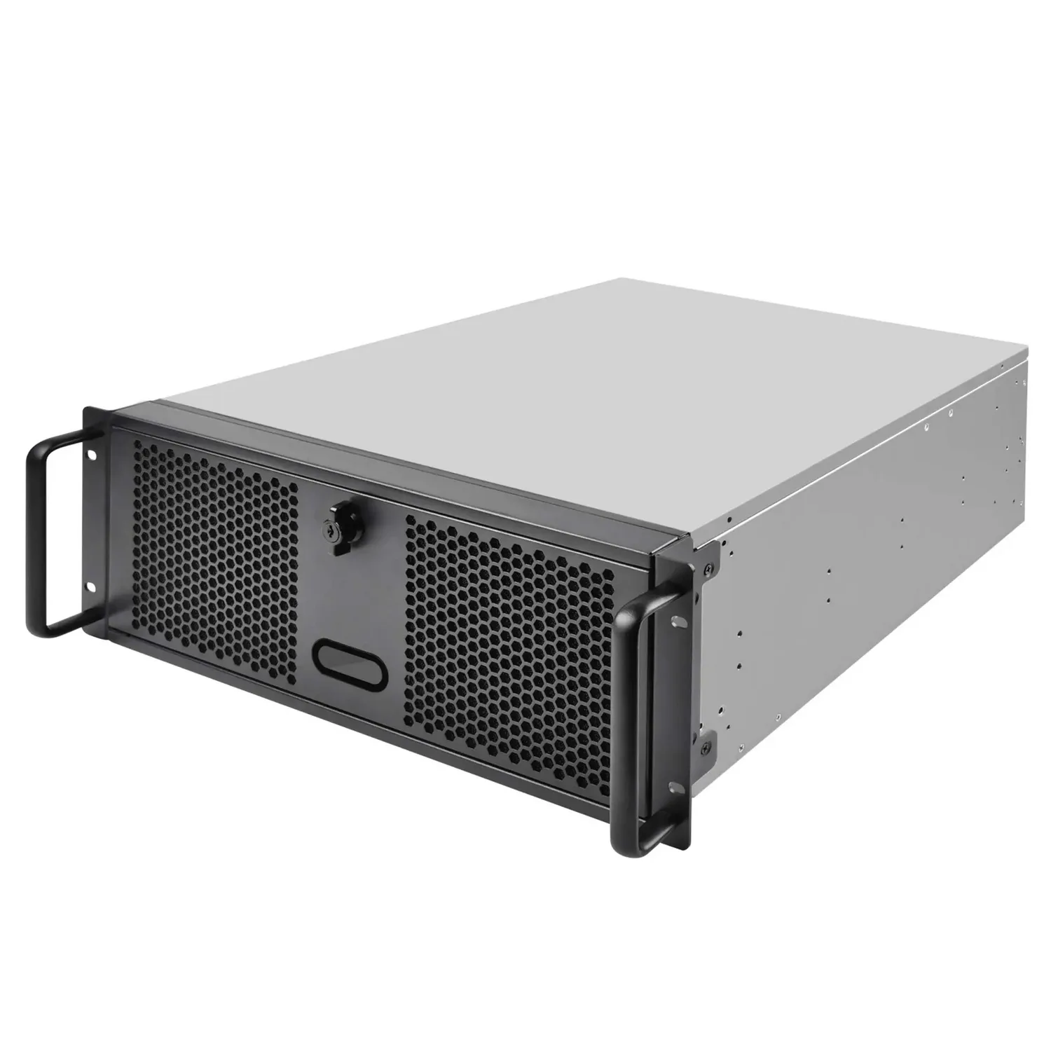 Chassis rackmount server 4U con 3× bay 5.25" frontali, supporto motherboard SSI-CEB/ATX/mATX/Mini-ITX, 7× slot PCI/PCIe standard profile, clearance CPU cooler 130mm. PSU ATX/Mini redundant fino a 160mm. Front door key lock, USB 3.1 Gen1, 2× fan PWM inclusi (120mm+80mm). Storage 8× 3.5" + opzioni 2.5". Metal 1.2mm thickness. Espansione card fino 220mm (339mm senza drive cage).