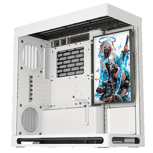 show case con kit GPU verticale PCIe 5.0 ed in bunlde monitor 14 pollici con supporto VESA