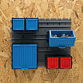 Sistema di rotaie modulari 1x1 per organizzazione versatile. Compatibilità universale, montaggio semplice, estensibile. Ideale per workspace, officine e spazi personalizzabili.