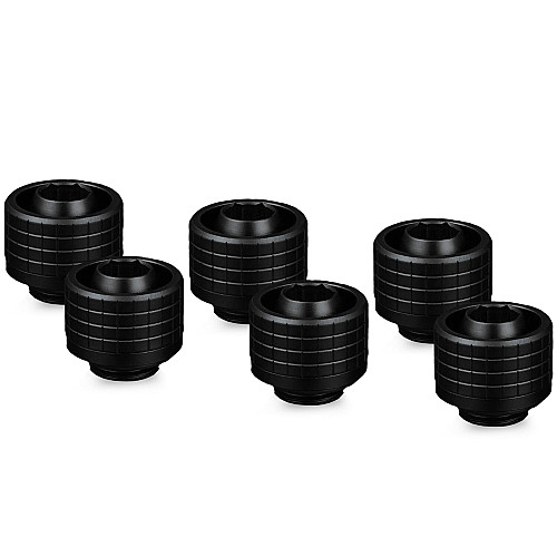 Pack da 6 raccordi a compressione in ottone per sistemi di raffreddamento ad acqua. Connettore G1/4" standard, design robusto e affidabile, compatibile con tubi di diametro esterno 16 mm. Ideale per loop custom e configurazioni HTPC.