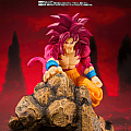 Figure premium articolata da 14,5 cm con 4 volti intercambiabili, effetto Kamehameha, Bastone Magico e dettagli fedeli alla nuova forma SSJ4. Tecnologia di articolazione avanzata Bandai.
