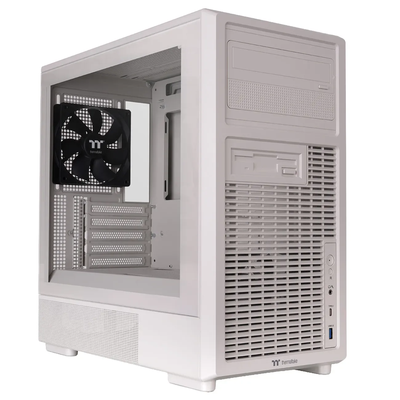Il case è compatibile con schede madri ATX, Micro-ATX e Mini-ITX, incluse le motherboard con connettori nascosti (hidden-connector) in formato ATX e Micro-ATX. Offre spazio per schede grafiche fino a 400mm di lunghezza, dissipatori CPU fino a 170mm e alimentatori fino a 275mm. Il pannello I/O frontale include una porta USB 3.2 Gen 2 Type-C, una USB 3.0 Type-A e un jack HD Audio. Grazie al design brevettato degli slot di espansione rotabili e ai filtri antipolvere rimovibili, la manutenzione e la personalizzazione risultano semplici e pratiche. È inoltre disponibile come accessorio opzionale un kit LCD da 6 pollici per visualizzare informazioni in tempo reale, immagini e GIF, compatibile con il software TT RGB PLUS 3.0 e la funzione AI Forge.