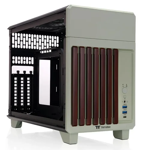 Il Thermaltake TR100 WS Matcha Green Mini Tower Chassis è un case compatto Small Form Factor (SFF) da 18.4 litri con design dual-chamber, pensato per chi cerca prestazioni elevate in un formato ultra-portatile ed esteticamente raffinato. L'elegante colorazione Matcha Green, impreziosita da accenti in legno, conferisce un look sofisticato e moderno che si distingue nel panorama dei case Mini-ITX.