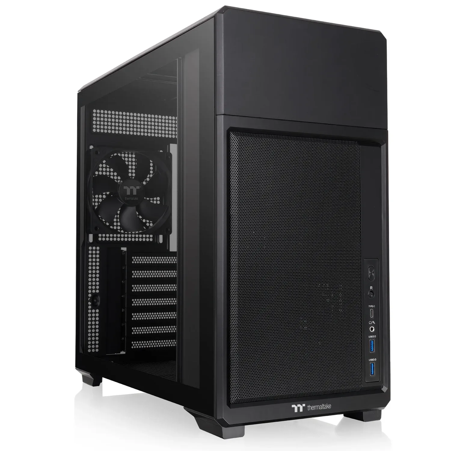 Il Thermaltake TR300 TG è un case mid-tower dal design innovativo con montaggio frontale dell'alimentatore, pensato per ottimizzare lo spazio interno e garantire la massima efficienza di raffreddamento. Compatibile con schede madri ATX, Micro-ATX e Mini-ITX, offre supporto per radiatori AIO fino a 360mm nella parte superiore e ospita schede grafiche fino a 410mm di lunghezza, rendendolo ideale per build gaming e workstation di alto livello.