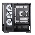 Il sistema di raffreddamento preinstallato include una ventola SF360 ARGB PWM Reverse da 360mm sul lato della scheda madre e una ventola SF120 ARGB PWM da 120mm nella posizione posteriore, con illuminazione ARGB sincronizzabile tramite ASUS Aura Sync, GIGABYTE RGB Fusion, MSI Mystic Light Sync e ASRock Polychrome. La struttura supporta fino a dieci ventole da 120mm e radiatori fino a 360mm nella parte superiore o sul lato motherboard, offrendo grande flessibilità per configurazioni di raffreddamento a liquido.