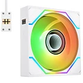 Lo spessore di 28 mm, superiore ai tradizionali 25 mm, migliora flusso d'aria e pressione statica, offrendo al contempo più spazio per valorizzare l'illuminazione Dual Infinity Mirror. Il design Hidden Screw nasconde le viti di montaggio sotto appositi gommini, regalando una superficie liscia che esalta l'estetica ARGB. La sincronizzazione è garantita con i principali software RGB per schede madri con header addressable 5V: ASUS Aura Sync, GIGABYTE RGB Fusion, MSI Mystic Light Sync, ASRock Polychrome e BIOSTAR.