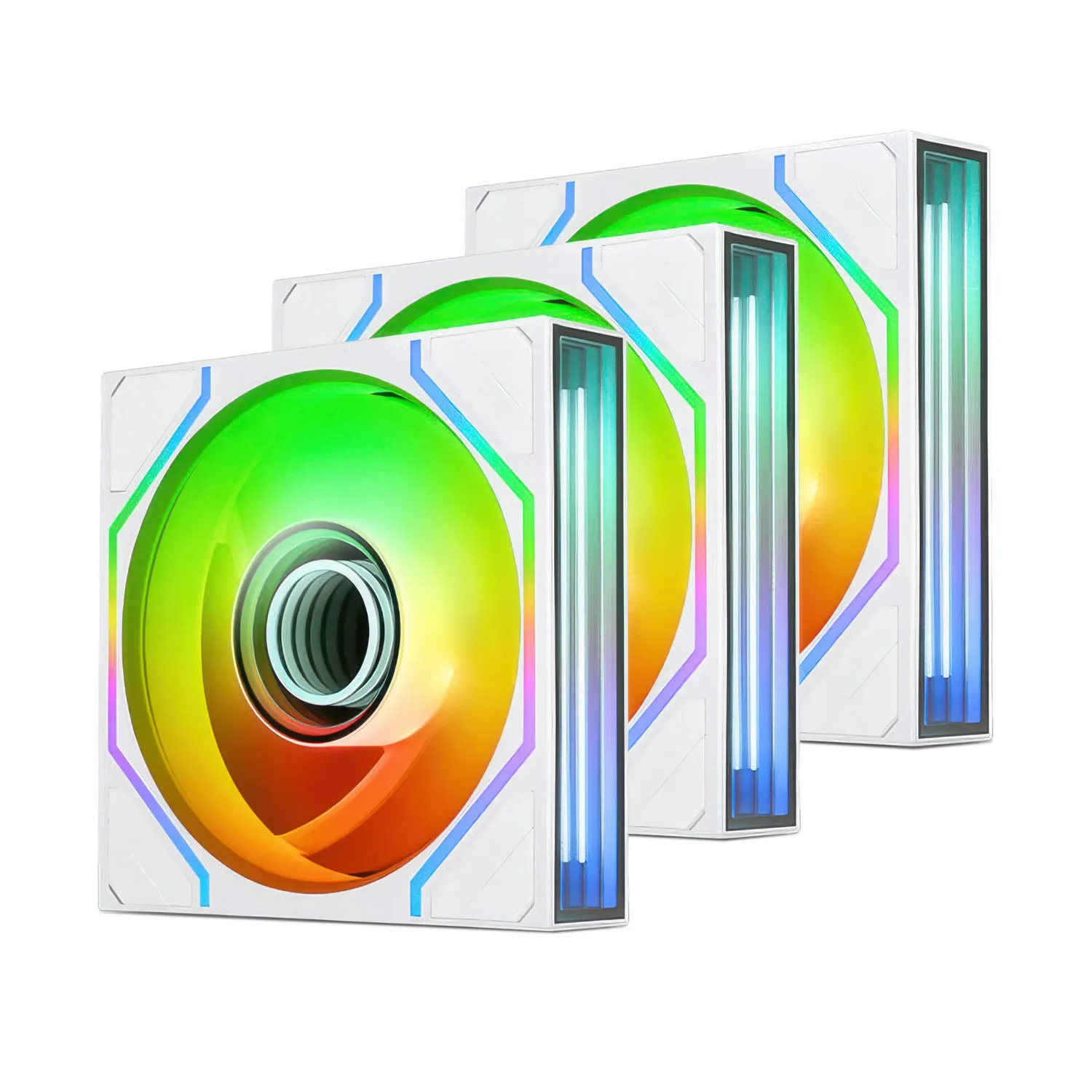Il Thermaltake SWAFAN 120 EX INFINITY (3-Fan Pack) è un kit di tre ventole da 120 mm progettate per chi desidera prestazioni di raffreddamento elevate e un impatto estetico straordinario. Grazie all'esclusivo sistema Dual Infinity Mirror Lighting, ogni ventola proietta un doppio anello luminoso a specchio infinito sia sull'hub centrale sia su due lati del telaio, combinando un anello interno bianco fisso con un anello esterno ARGB completamente personalizzabile per un effetto visivo unico e stratificato.