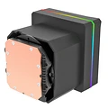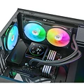 Il radiatore slim da 27 mm con camera in rame ispessita da 20 mm assicura un'ottima dissipazione termica in un formato compatto e facile da installare. La base in rame della pompa accelera la conduttività termica per un trasferimento rapido del calore dalla CPU. L'illuminazione ARGB a 16,8 milioni di colori è sincronizzabile con le principali piattaforme RGB delle schede madri tramite header addressable 5V, tra cui ASUS Aura Sync, MSI Mystic Light Sync, GIGABYTE RGB Fusion e ASRock Polychrome.