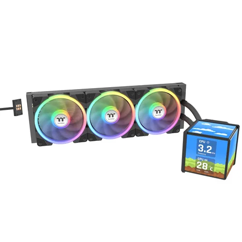 Thermaltake MINECUBE 360 Ultra ARGB Sync - Nero - AIO Liquid Cooler 360mm con Quad-LCD Cube Display