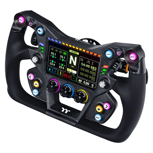 Al centro del volante è integrato un display touchscreen da 5 pollici con risoluzione 854×480 che fornisce in tempo reale dati su RPM, bandiere e informazioni di gara, mantenendo ogni dettaglio critico sempre visibile senza distogliere l'attenzione dalla pista. Il volante è circondato da pulsanti retroilluminati RGB, toggle switch frontali e posteriori, encoder rotativi, thumb encoder e funky switch multidirezionali, consentendo ai piloti di personalizzare ogni comando in base al proprio stile di guida.