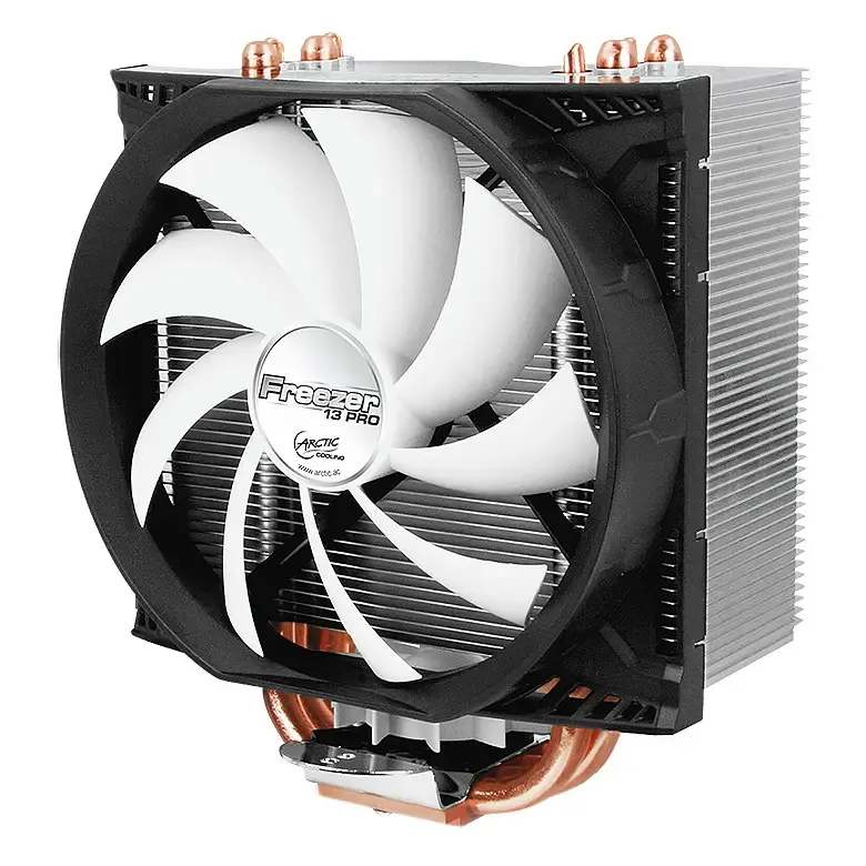 Con il Freezer 13 Pro la Arctic Cooling presenta un cooler compatto ad alte prestaizoni, grazie all'utilizzo di una ventola d da 120 mm PWM e di ben 4 heatpipe da 8 mm. Grazie a questo tipo di soluzione il dissipatore occupa in verticale solamente 16 cm, permettendone l'installazione anche in case dove lo spazio è limitato.