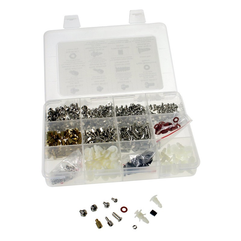 Questo comodo e pratico box InLine in plastica richiudibile contiene vari formati di viti a croce (Philips o stella), distanziali, jumper e altra minuteria ideale in ambito informatico per montaggio e/o manutenzione di Personal Computer (PC), Server e altr